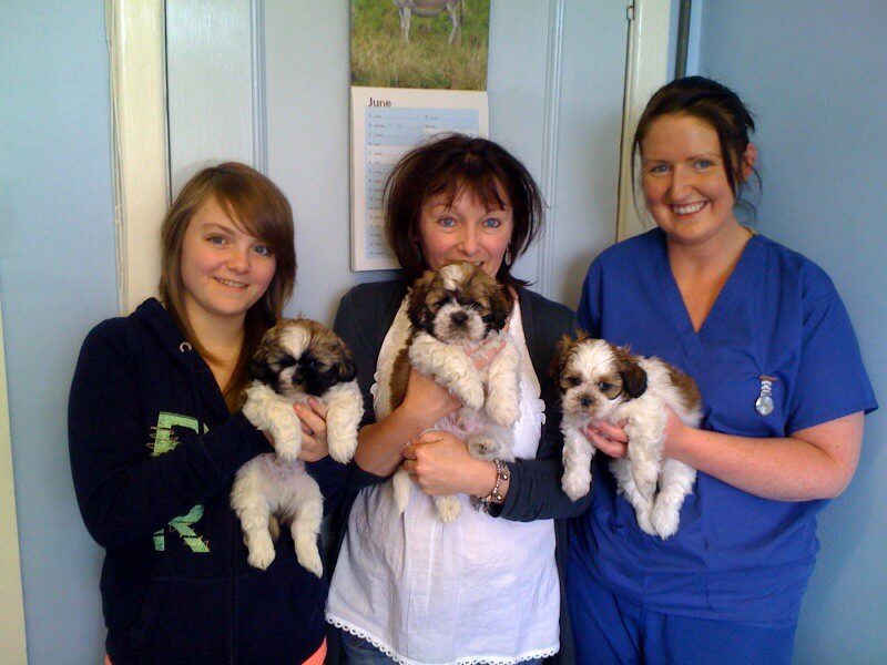 O’Sullivan puppies first vaccinations Posted on June 16, 2010 by Candace The O’Sullivan family and their three beautiful Shih Tzu puppies getting their first vaccinations with Paul and Tracy.