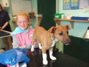 Tilly is a 4 month old Jack Russel puppy. On Saturday, Tilly gave her owners an awful fright. She arrived home from work to find that she had chewed through a wire at the fridge and gave her self terrible mouth burns as well as electrocution. She was in severe shock and this could have been fatal for Tilly. She was quickly brought to the vets and nurse of The Animal Hospital. She was placed on fluid therapy and oxygen quickly. Her temperature was so low that we had to get her warmed up as soon as possible. After a stay in the emergency hospital, Tilly was sent home and was doing much better. She will be on medications for her burns but otherwise she had a lucky escape from an almost always fatal action.